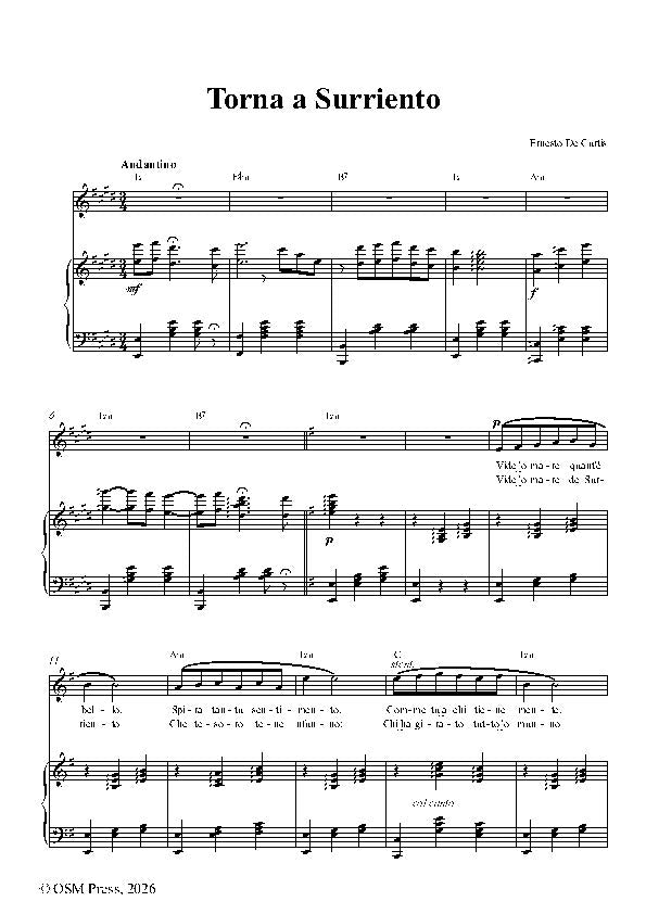 This product is a digital sheet music in PDF format. The popular song was composed by Ernesto De Curtis, for Voice and Piano, published by Open Sheet Music.